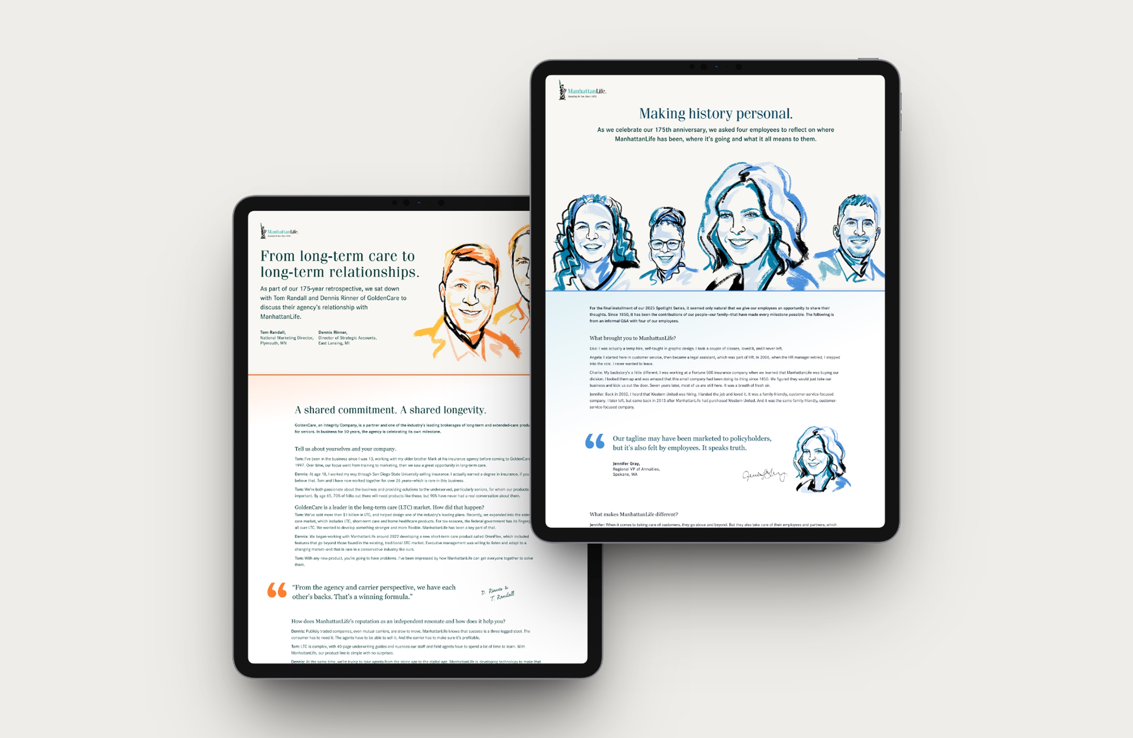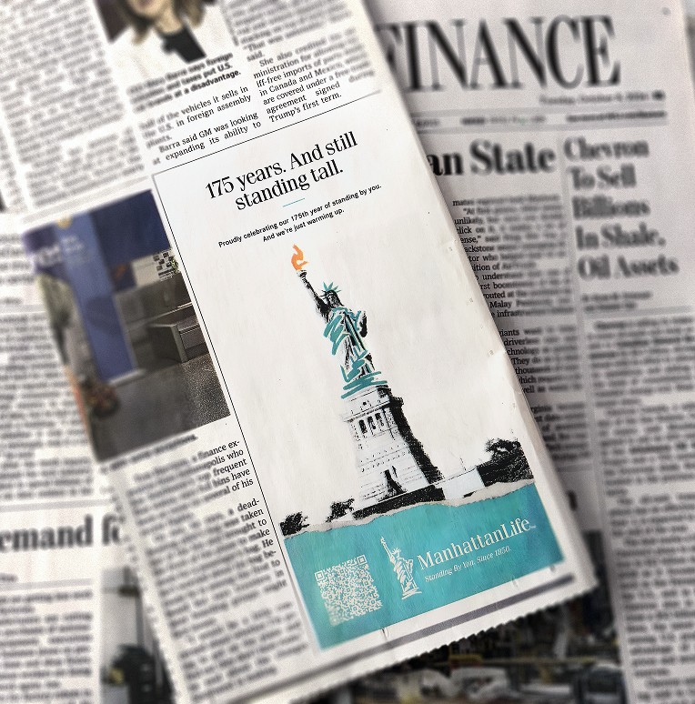 Even after 175 years, ManhattanLife is still there for the everyday American. So when this big birthday came around, they decided a 22-story video ad in the most crowded spot in Manhattan might do the trick. Throw in a full color spot in The Wall Street Journal in tandem and now you've garnered some attention. After multiple rounds of ideation and concepts, we decided on a running timeline of iconic moments tied to Manhattan and beyonds, just to remind us all that ManhattanLife has been there, and done that.